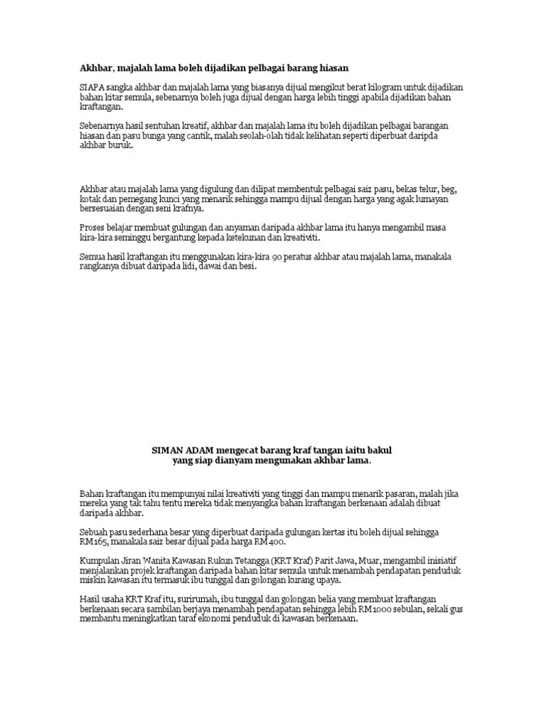 Dekat sekolah dulu pun ada buat kraftangan daripada barangan terbuang gak:d.